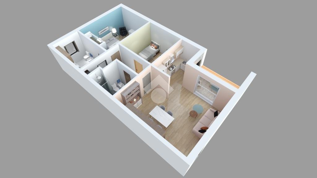 L'ingresso luminoso ci porta alla zona giorno, composta da soggiorno, cucinotto separato e terrazzo loggiato.