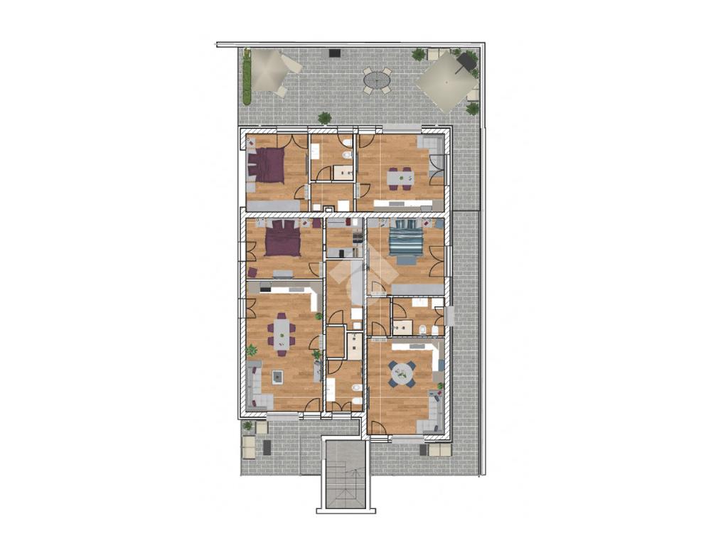L'unità fa parte di un piccolo complesso di sole cinque abitazioni, tutte con un'ottima indipendenza e dotate di esterno privato per quelle al piano terra piuttosto che terrazze abitabili per i due midi al primo piano.