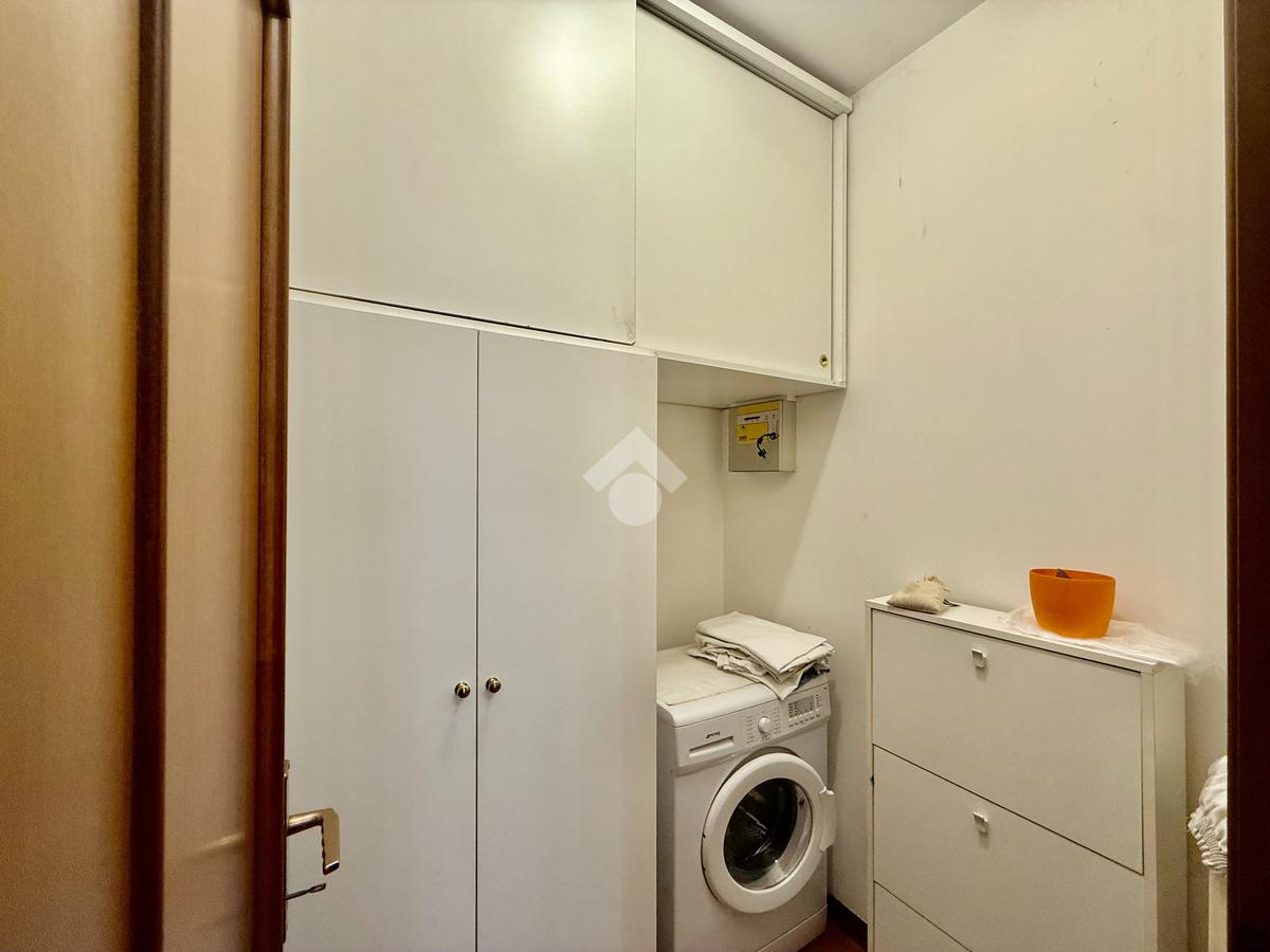 Ingresso attrezzato, ripostiglio nel disimpegno che porta al bagno e lavanderia integrata.