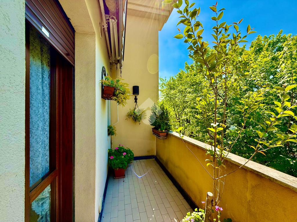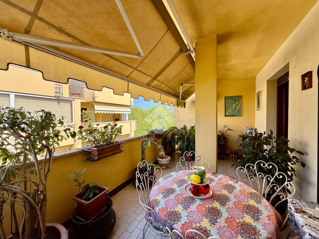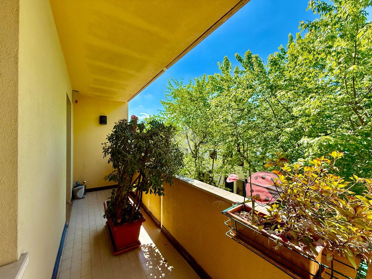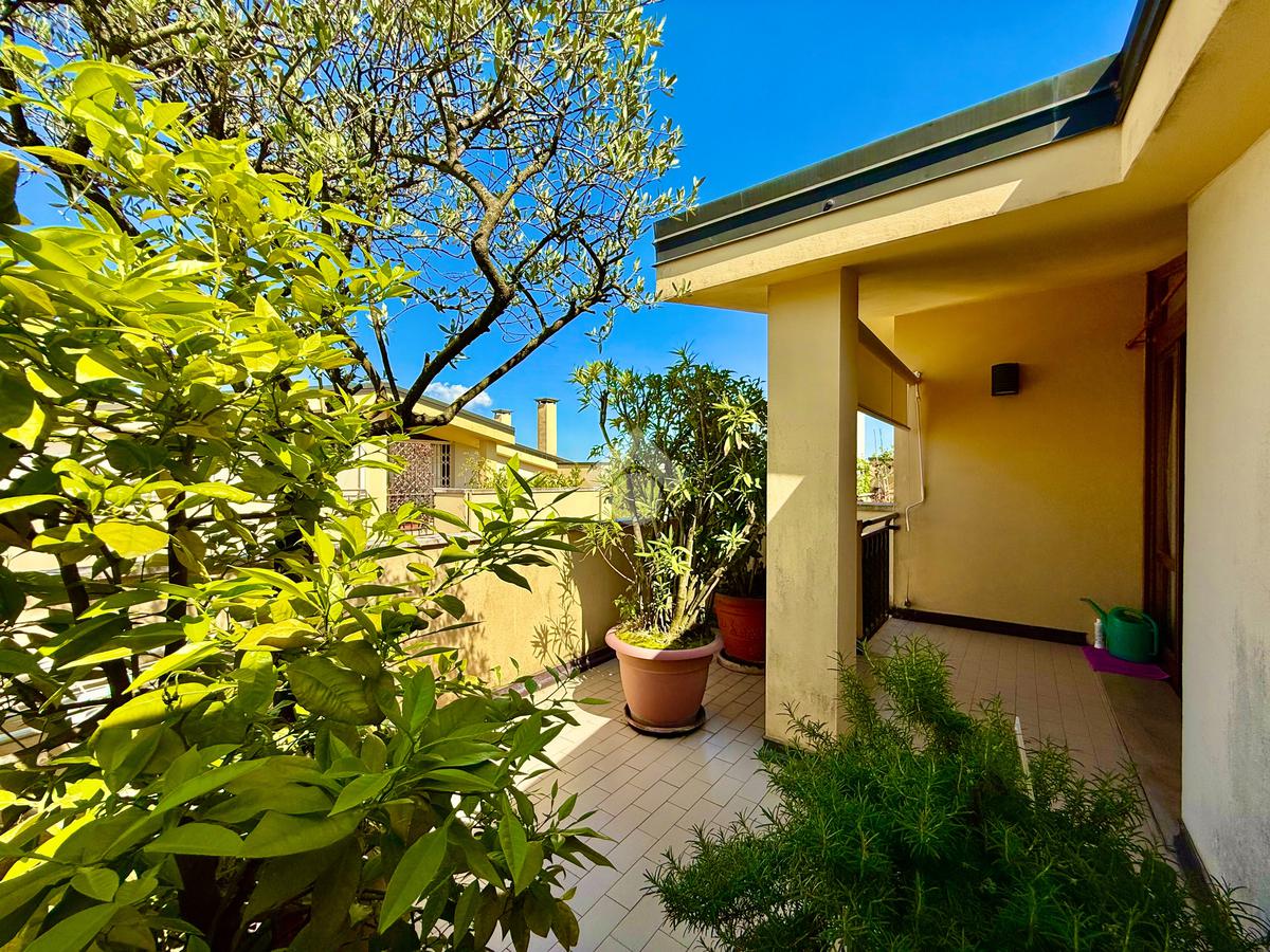 Ingresso al piano secondo, comodo anche da ascensore, zona living con cucina separata e bagno di servizio finestrato con doccia. La terrazza della in corrispondenza della zona living è ampia e profonda, con tenda da sole che ripara, ideale per pranzare e cenare con amici e parenti nella bella stagione.