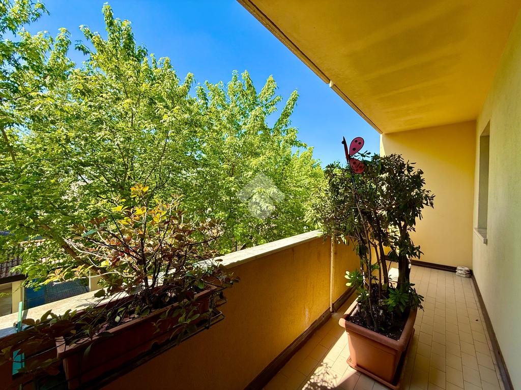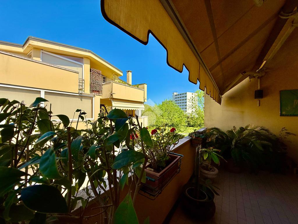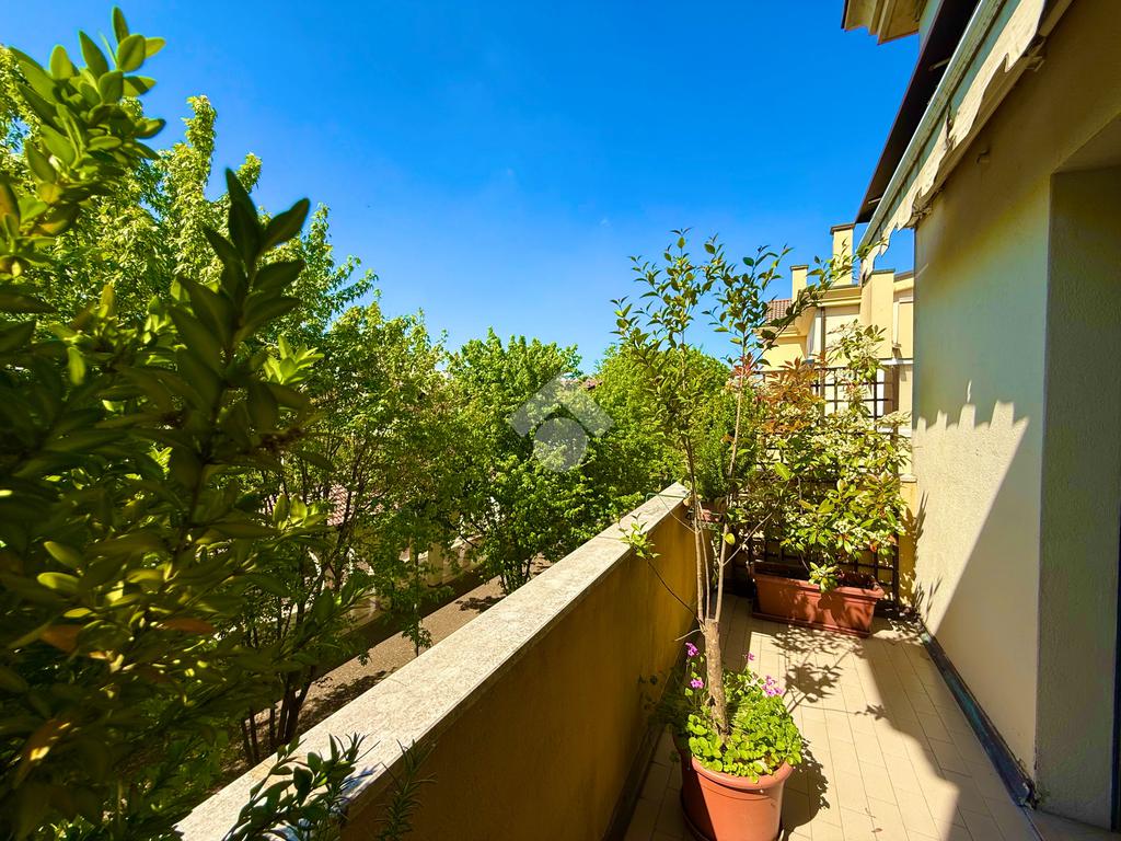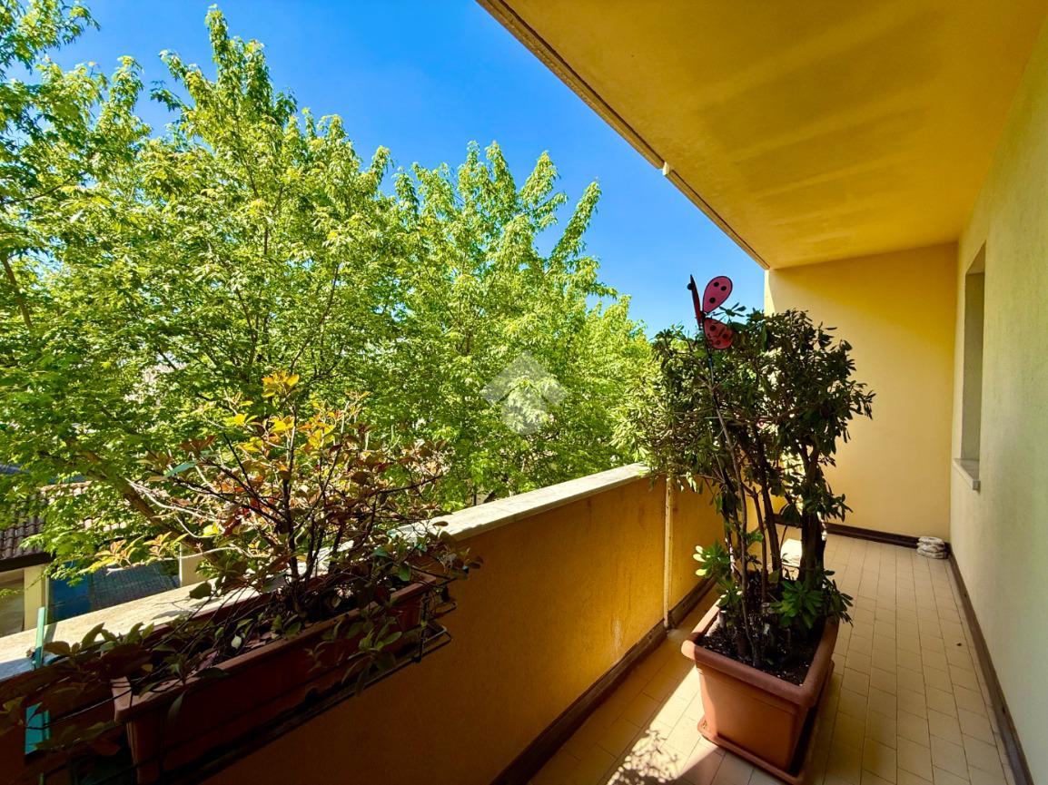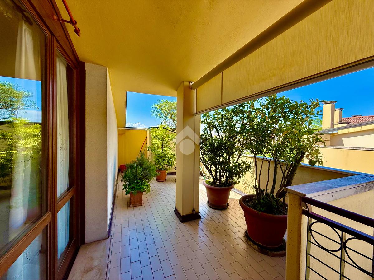 Ingresso al piano secondo, comodo anche da ascensore, zona living con cucina separata e bagno di servizio finestrato con doccia. La terrazza della in corrispondenza della zona living è ampia e profonda, con tenda da sole che ripara, ideale per pranzare e cenare con amici e parenti nella bella stagione.