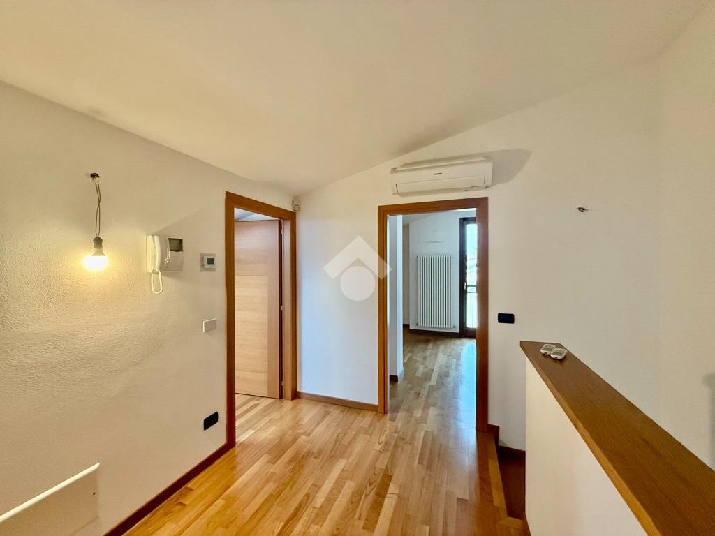 Al piano superiore la zona notte è gestita da un'ampio disimpegno da cui si accede alla generosa camera matrimoniale, e anche alle altre due stanze. Al piano troviamo anche il secondo bagno finestrato, questo con vasca.