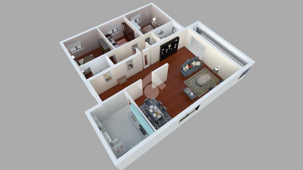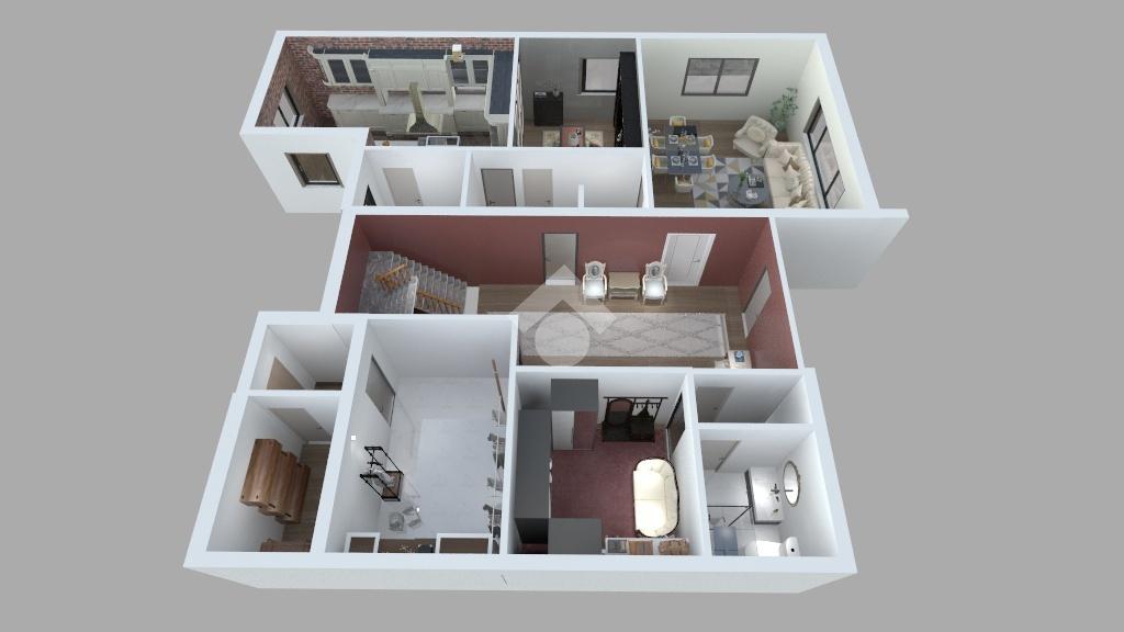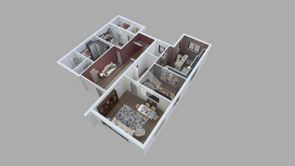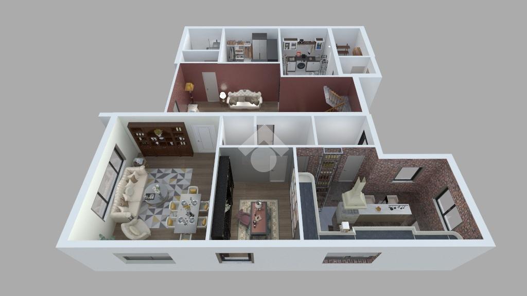 Frontalmente all'ingresso troviamo un'importante scala proporzionata alla grandezza dell'immobile, che ci accompagna al piano superiore, dove troviamo la zona living e zona notte. Il soggiorno spazioso di oltre 60 mq è contraddistinto dalla presenza di due divani e due sofà, oltre che di un tavolino e il caminetto. A completare la zona giorno, una stanza adibita a camera da letto, con possibilità di creare un secondo spazio cucina grazie alla presenza degli attacchi e un comodo poggiolo che conferisce una luminosità naturale agli ambienti. A sinistra della scala troviamo un disimpegno che ci accompagna alla zona notte, contraddistinta da tre camere matrimoniali e due bagni finestrati.