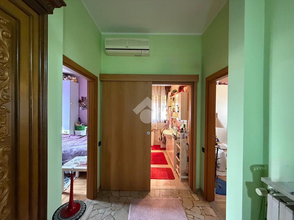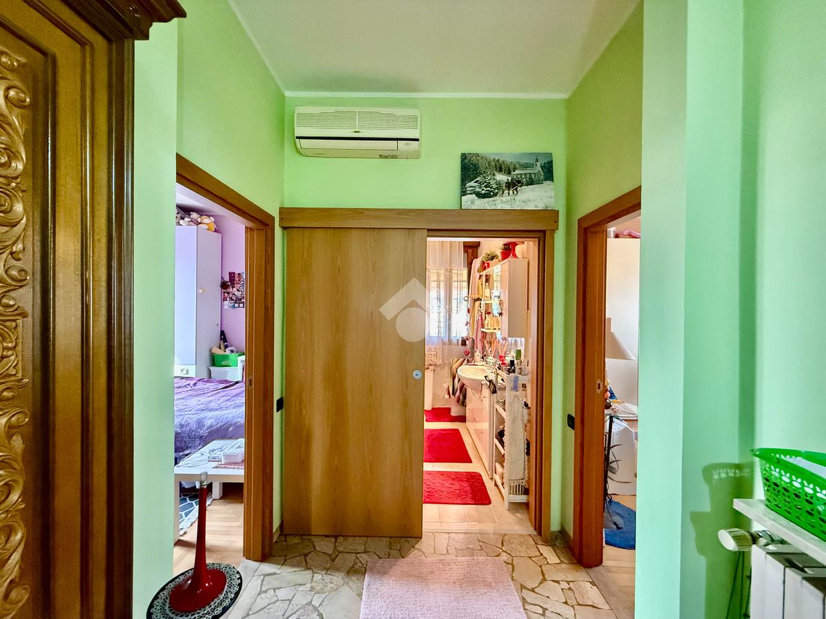 Luminoso ingresso indipendente da scala esterna nel grande atrio che può essere attrezzato con guardaroba e console specchiera in accoglienza.