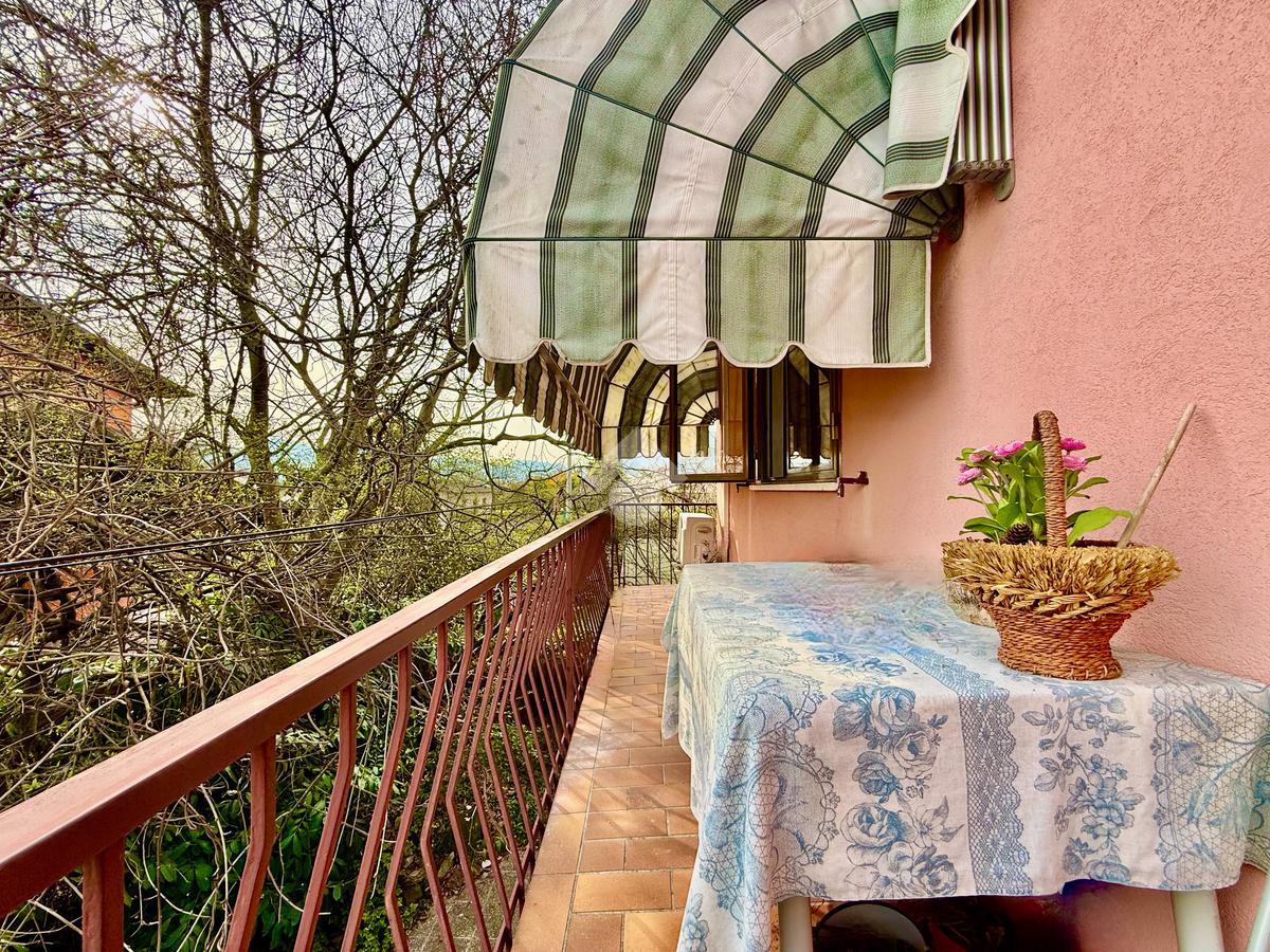 La zona giorno è composta dal salotto e dalla cucina separata e abitabile in corrispondenza del poggiolo esterno panoramico.